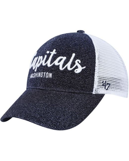 This '47 Brand cap features the team's name across the front and mesh panels for a classic trucker look. The snapback closure ensures a comfortable fit, perfect for cheering the Washington Capitals as they hit the ice. Nylon, Polyester - Material I, 100% Polyester - Material II. Color: blue