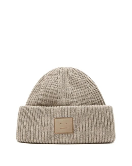 Ribbed Face-Patch Beanie Hat - Natural