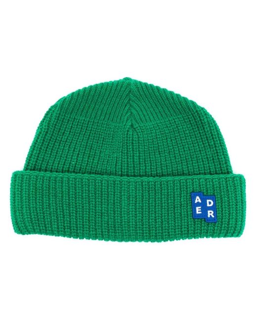 Women's Green Logo-Patch Ribbed-Knit Beanie