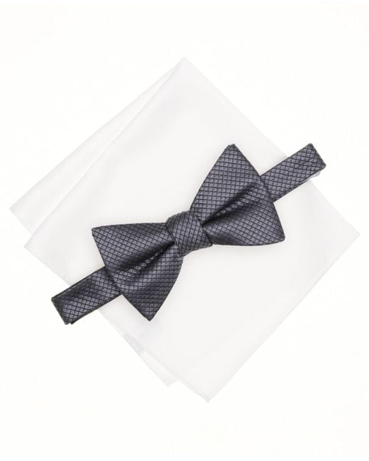 - Mini-pattern Bow Tie & Solid Pocket Square Set