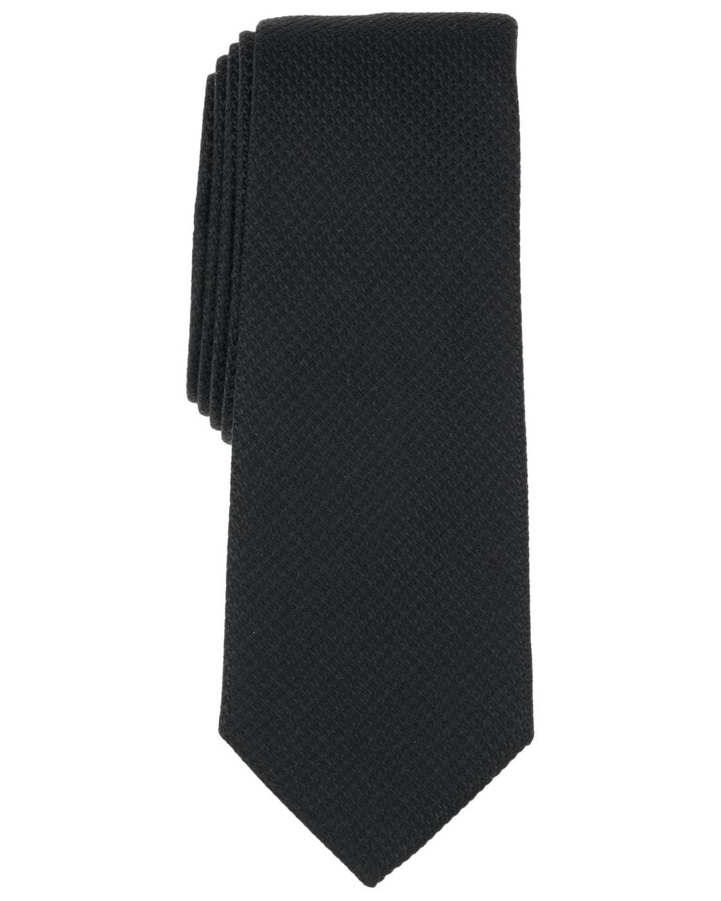 Designed for versatility, the Alfani Nebula tie features a sleek slim silhouette that delivers a sharp, tailored look. Its classic solid shade makes it suitable for a range of formal occasions. 75% polyester, 25% lyocell. Color: black