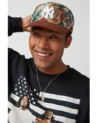Go to Urban OutfittersModern baseball hat with an adjustable clip back closure from American Needle, only at UO. Perforated faux leather construction features stitched grommet details finished with a contrast embroidered N. Y. Yankees logo at