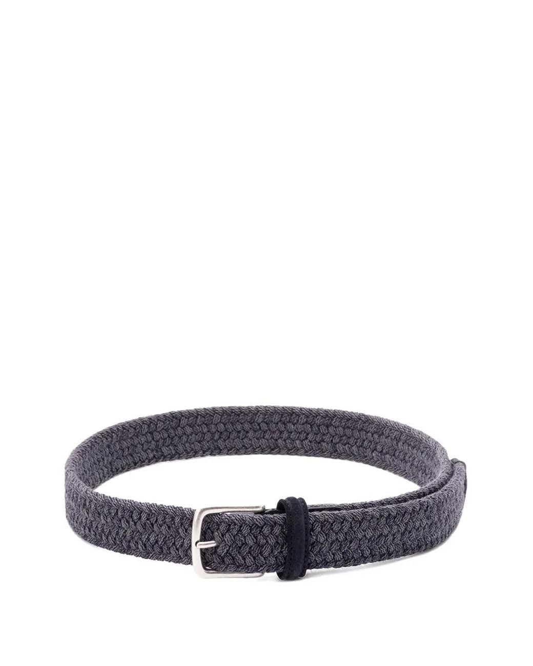 Dark blue braided design silver-tone buckle leather detailing adjustable fit Size: 105. Gender: Male. Material:Wool. Color: blue