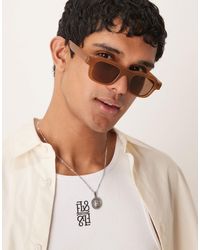 Go to ASOSSunglasses by ASOS DESIGN Rectangular frames Molded nose pads Colored lenses Standard arms. Color: white