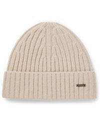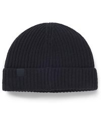 Go to HUGO BOSSTreat yourself to luxurious warmth in chilly snaps with the 100% cashmere knit of this BOSS Menswear beanie hat. Thick ribbed structure. Metal plaque trim. Color: blue