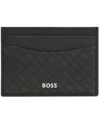 Go to SSENSESaffiano leather card holder in black. · Logo stamp at face · Striped grosgrain flag · Four card slots · One note slot · Twill lining · H3 x W4 Supplier color: Black
