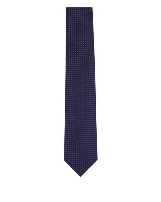 Geometric-Pattern Silk Tie - Blue