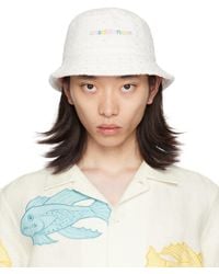 Go to SSENSECrocheted cotton bucket hat in white. · Graphic appliqués throughout · Logo embroidered at face Supplier color: White