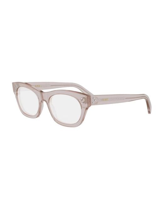 Celine 3 Dots Eyeglasses bring a refined cat-eye silhouette and premium acetate construction for everyday wear. The design balances a bold frame shape with subtle signature detailing and is supplied with the original Celine case. Key attributes: Brown | Black | Pink | Acetate | Rx-able | Includes original case | Prescription-ready | Cat-eye shape | 3-dots temple detail | Full-rim frame | Dimensions & fit: Lens width: 53 mm | Bridge width: 19 mm | Temple length: 140 mm | International fit | Composition & care: Acetate Color: white