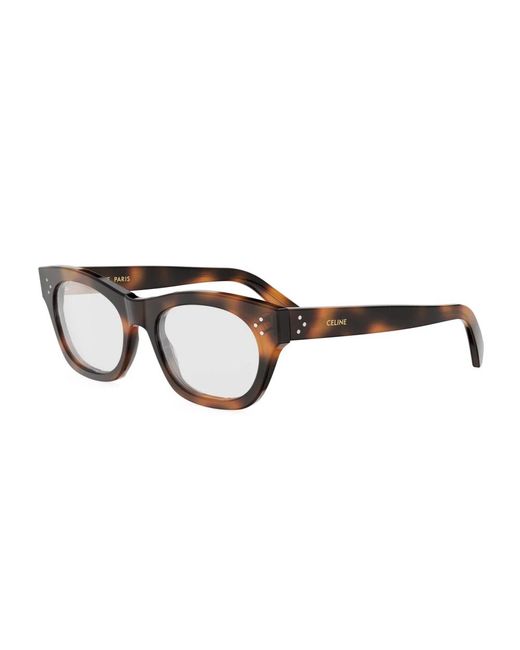 Celine 3 Dots Eyeglasses pair a refined cat-eye profile with acetate construction for polished everyday wear. The design balances a bold silhouette with wearable versatility. Key attributes: Brown | Havana | Acetate | Comes with original case | Full-rim frame | Cat-eye shape | 3 Dots detailing | Dimensions & fit: Lens width: 53 mm | Bridge width: 19 mm | Temple length: 140 mm | Medium frame | Composition & care: Acetate Color: brown
