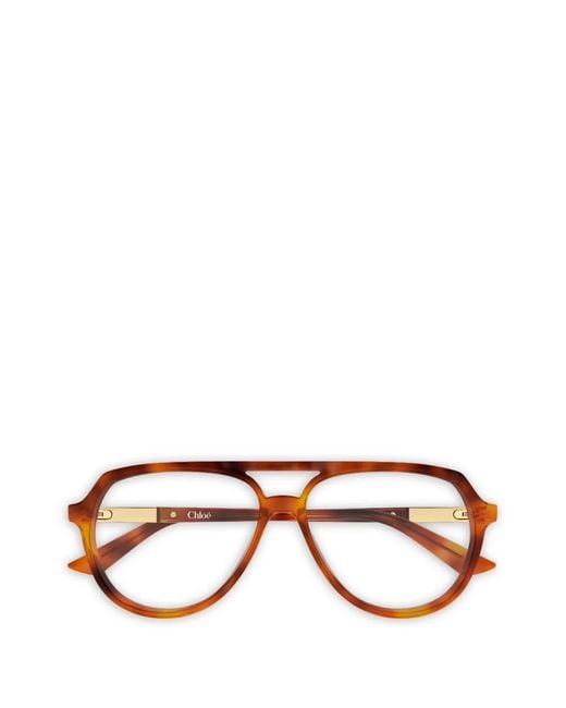 Brown gold-tone hardware logo detail pilot frame All glasses from FARFETCH are sold as non-prescription frames. These glasses come with a protective case. Size: 57. Gender: Female. Material:Acetate. Color: brown