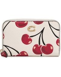 COACH Women's Black Long Zip Around Wallet With Cherry Print