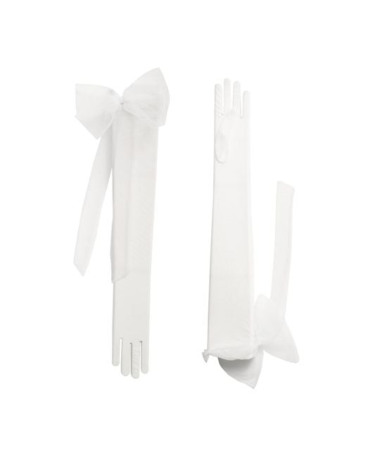 An opera-length glove in soft tulle, Amara features a beautiful bow at the top for a romantic finishing touch. Ethereal and graceful, she brings a fairytale look—perfect for that strapless or sleeveless wedding gown. Color: white