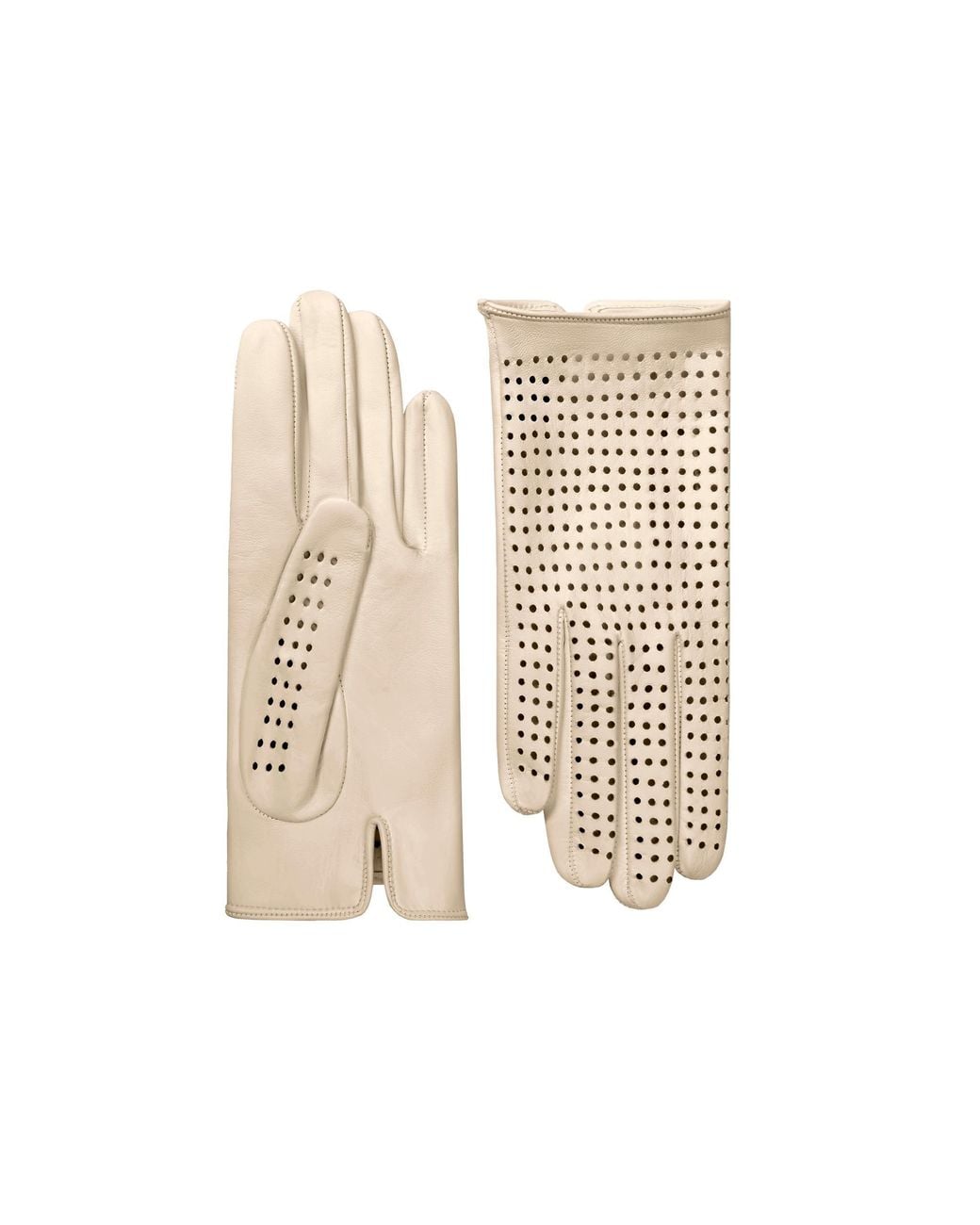 Our Brigitte glove - available in White, Parchment and Old Rose unlined leather - is a spring time sensation. It’s all in the perforations! Color: natural