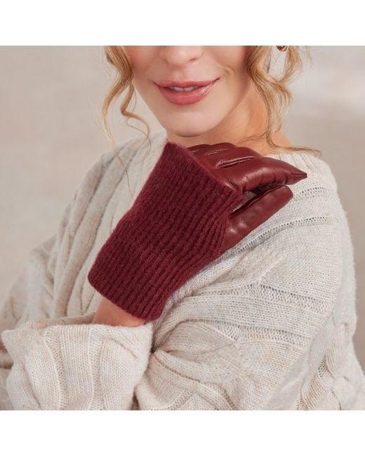 <p>Our Inès glove is devilishly cunning in that it essentially gives you two gloves in one. Lambskin leather with a pure cashmere lining, this glove has an extended ribbed cuff, also in cashmere. The cuff can either be worn over the wrist to keep you toasty or peeled back to cover the palm of the hand (there’s an opening for the thumb) to demonstrate to the Wider World your edgy fashion credentials.</p> Color: purple