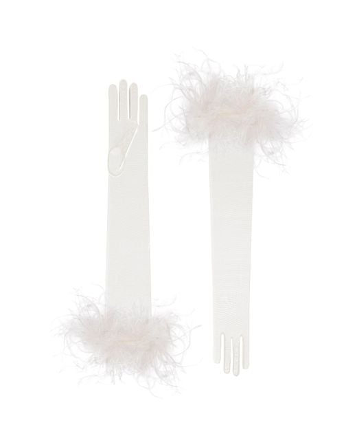 Ostrich feathers are never less than a show of pure joy and here, matched with tulle, they make a simple, classic glove simply spectacular. Sofia is nothing if not versatile. It is a glove that can take you clubbing, down a red carpet or down the aisle. It speaks of pure joie de vivre and simple classic styling done spectacularly right. Color: white