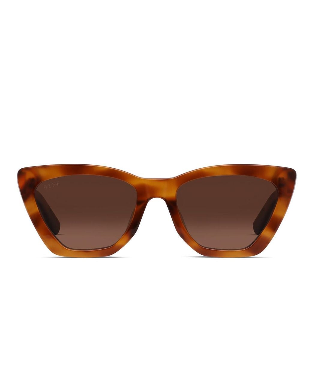 Diff Camila Tortoise - Price includes high quality frames, standard prescription lenses, shipping, free case and cloth. Extra Large Tortoise Full-Rim for Women. These Cat Eye shaped sunglasses are great for Heart/Oval/Round/Square shaped faces. Only $158. Color: brown