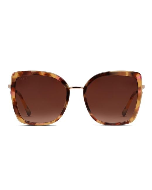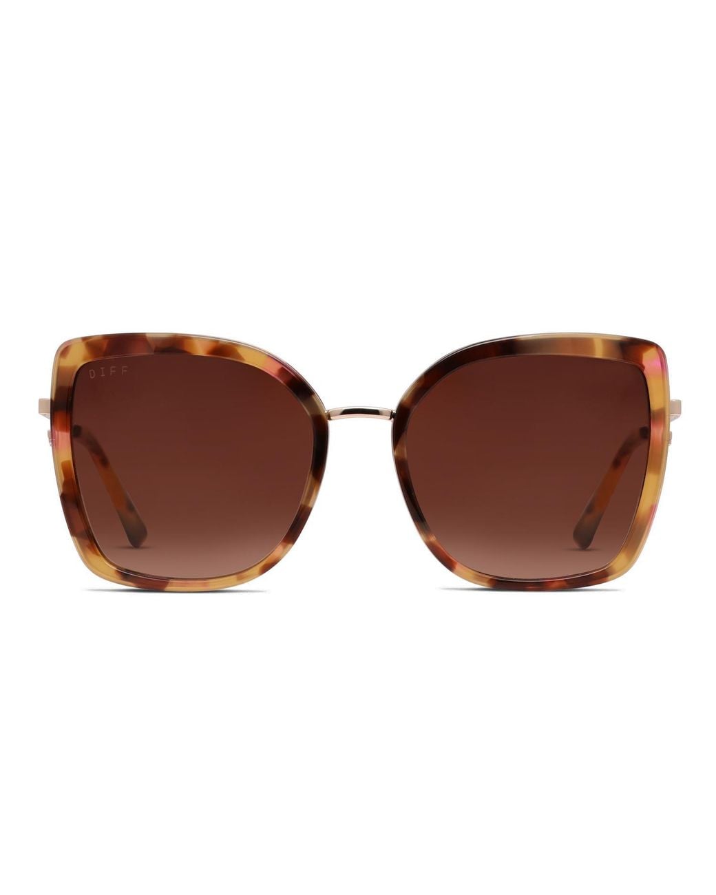 Diff Clarisse Tortoise/Pink/Gold - Price includes high quality frames, standard prescription lenses, shipping, free case and cloth. Extra Large Tortoise/Gold Full-Rim for Women. These Cat Eye shaped sunglasses are great for Heart/Oval/Round/Square shaped faces. Only $198. Color: brown