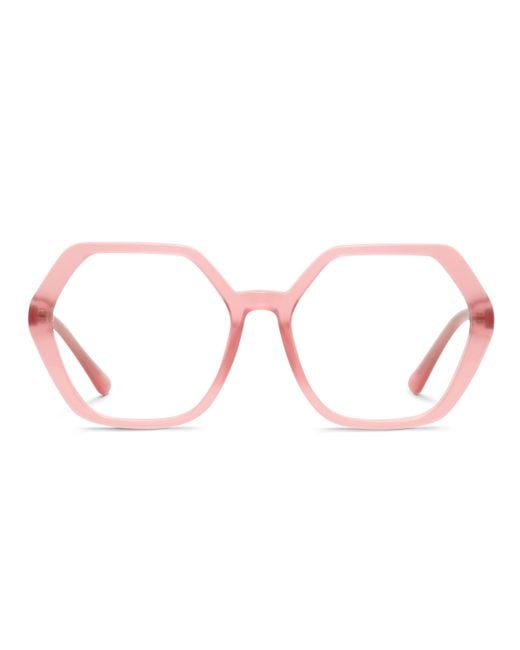 Diff Dixie Pink - Price includes high quality frames, standard prescription lenses, shipping, free case and cloth. Medium Pink Full-Rim for Women. These Geometric shaped eyeglasses are great for Oval/Round shaped faces. Only $148. Color: black