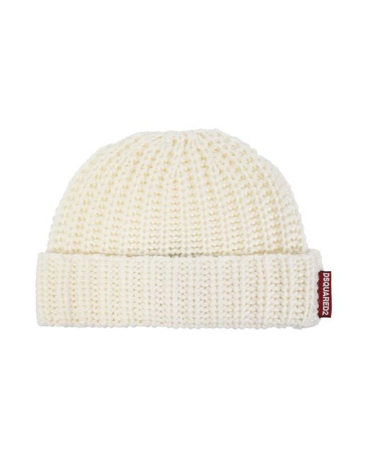 Stay stylish and warm with this Dsquared 2 Logo Tag Knit Wool Beanie in Cream. Made in Italy from 100% wool, this hat is a perfect addition to any male wardrobe.