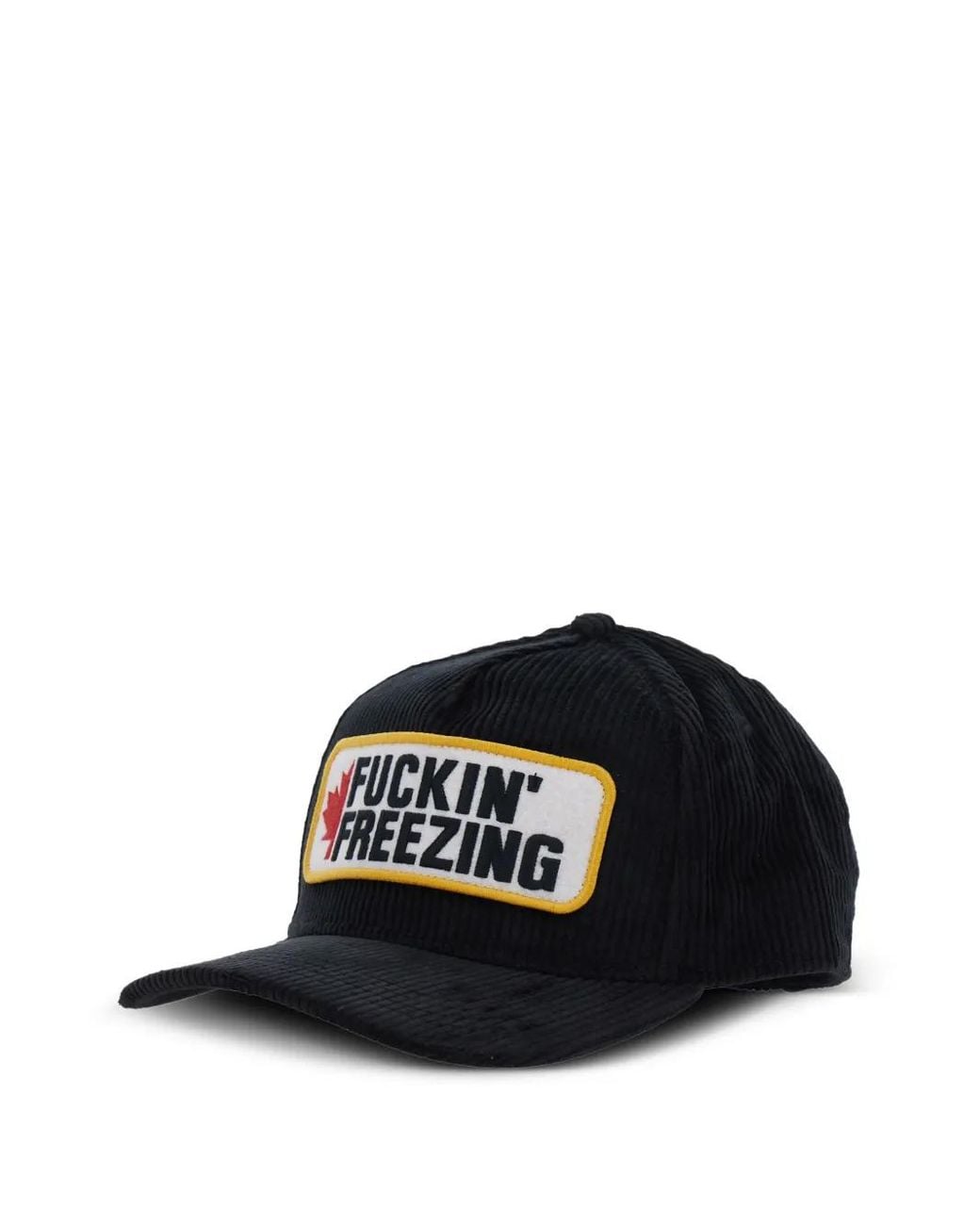 Black corduroy texture appliqué patch yellow trim maple-leaf detail adjustable strap Size: One Size. Gender: Male. Material:Fabric.