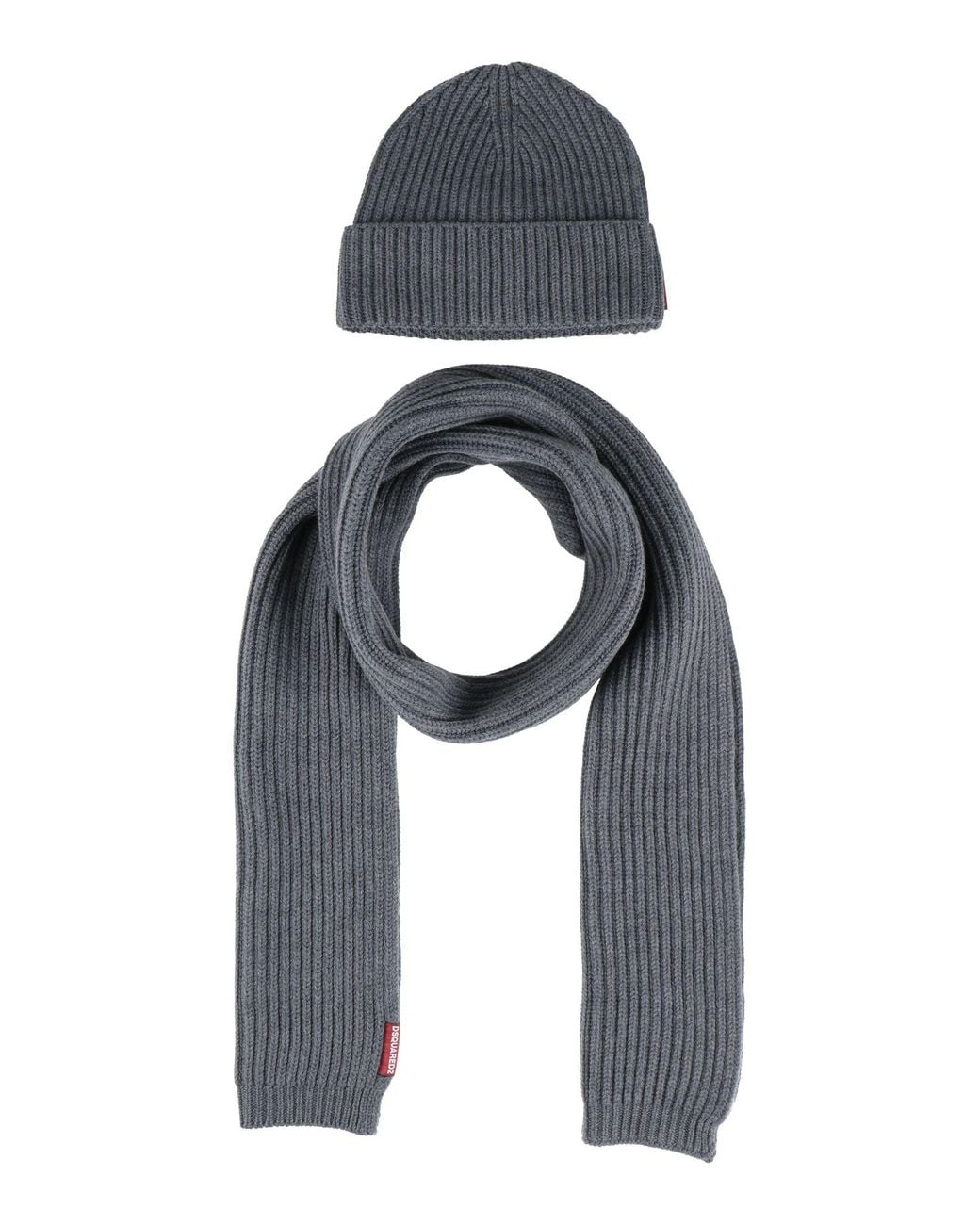 Ribbed-Knit Scarf Set - Gray