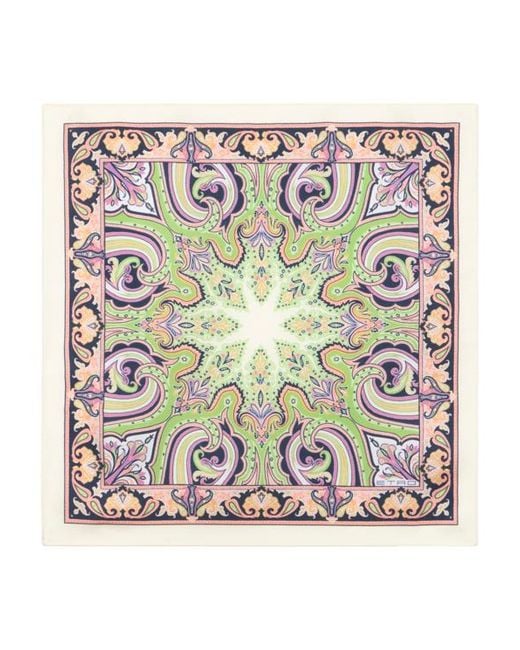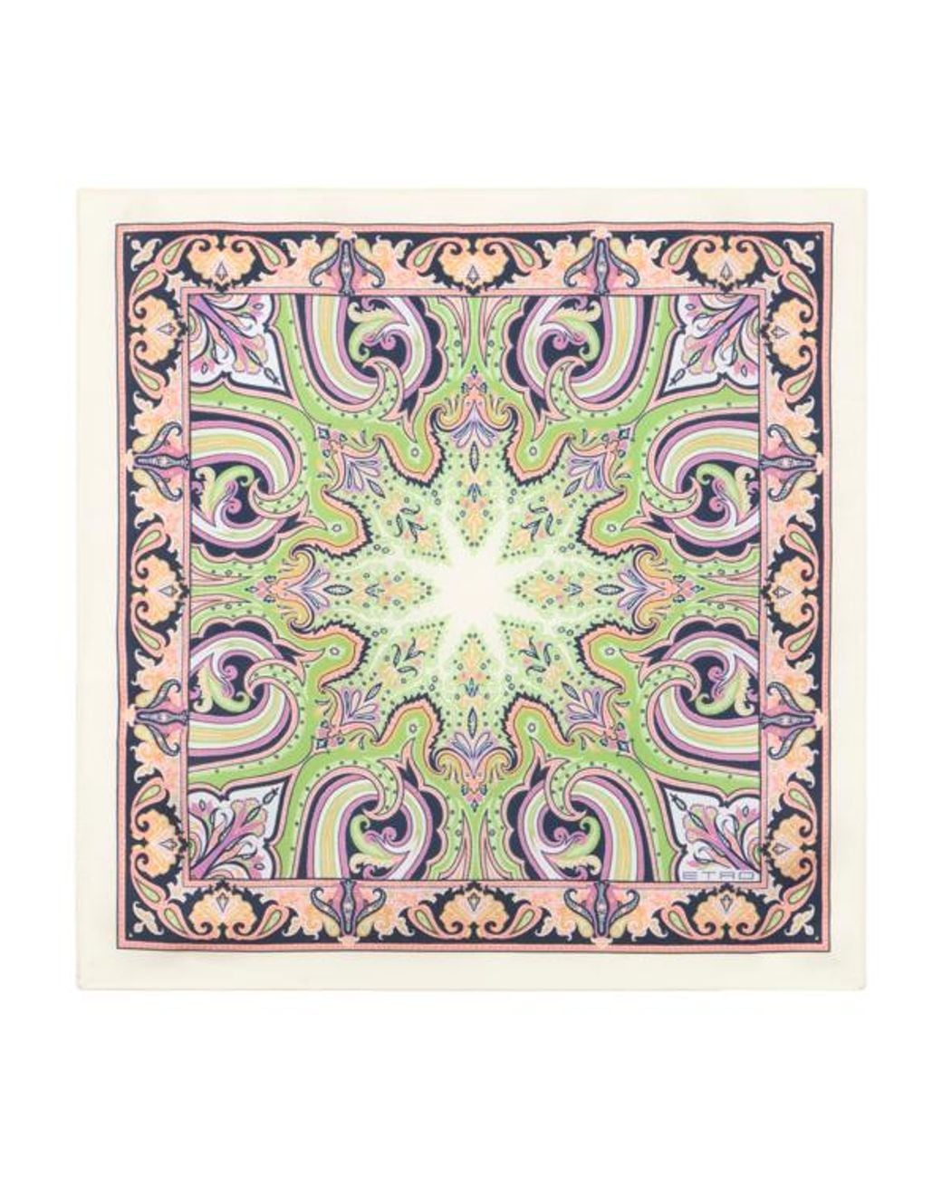 Pure silk twill pocket square with geometric Paisley motif and contrasting edges. This accessory is complete with an ETRO logo in the corner. Size: 16.9 x 16.9 inches (43 x 43 cm) Made in Italy Color: multicolor