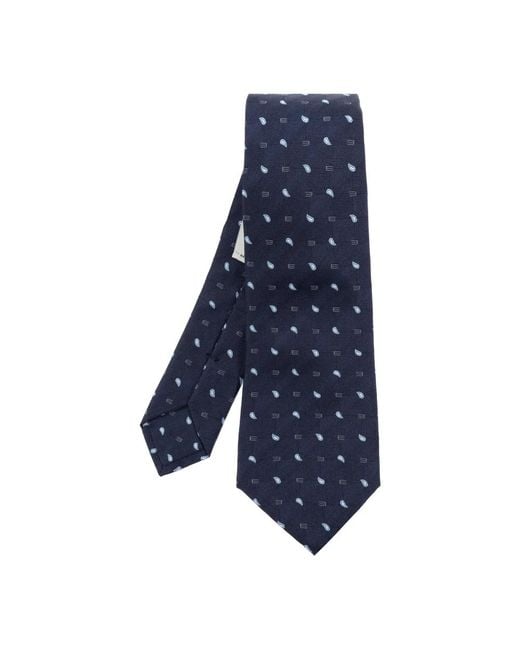 Introducing the Silk Tie from Etro, a sophisticated accessory featuring a navy blue hue adorned with subtle light blue motifs. Crafted from premium silk, this tie offers an elegant sheen and smooth texture, perfect for elevating formal ensembles. Key attributes: Navy Blue | Blue | Silk | Classic shape | Subtle pattern of light blue motifs reminiscent of small leaves or teardrops | Composition & care: 100% Silk | Dry clean only Color: blue