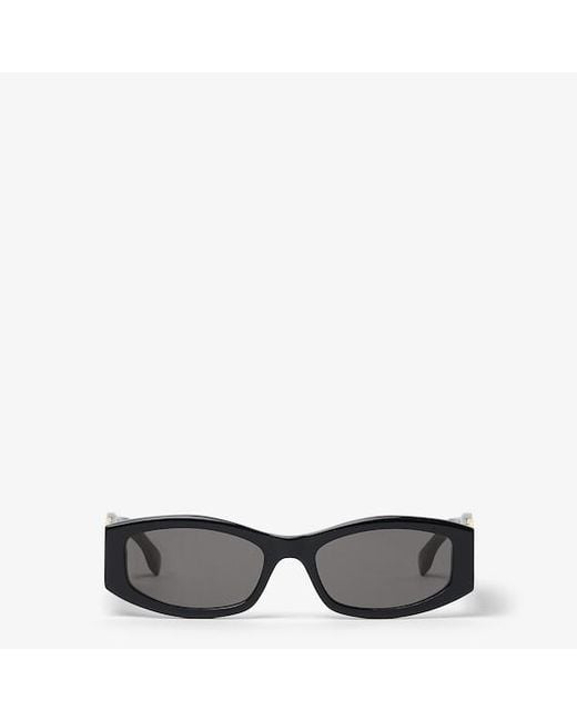 Forever Fendi oval glasses in black acetate. Wide temples inlaid with a large gold-colour metal FF. Smoke gray lenses. Made in Italy. One Size Color: black