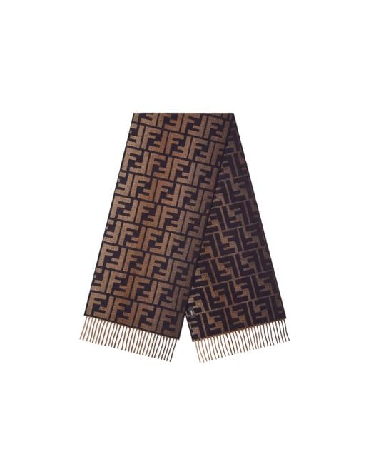Men's Brown Ff Jacquard Fringe Detailed Scarf