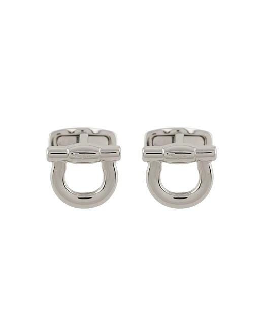 Recognised as one of the leading luxury accessory labels to date, Salvatore Ferragamo champions impeccable quality, excellent craftsmanship and timeless designs. These silver-tone brass Gancio cufflinks feature an engraved logo, an adjustable fit and a logo design. Size: One Size. Gender: Male. Material:Brass.