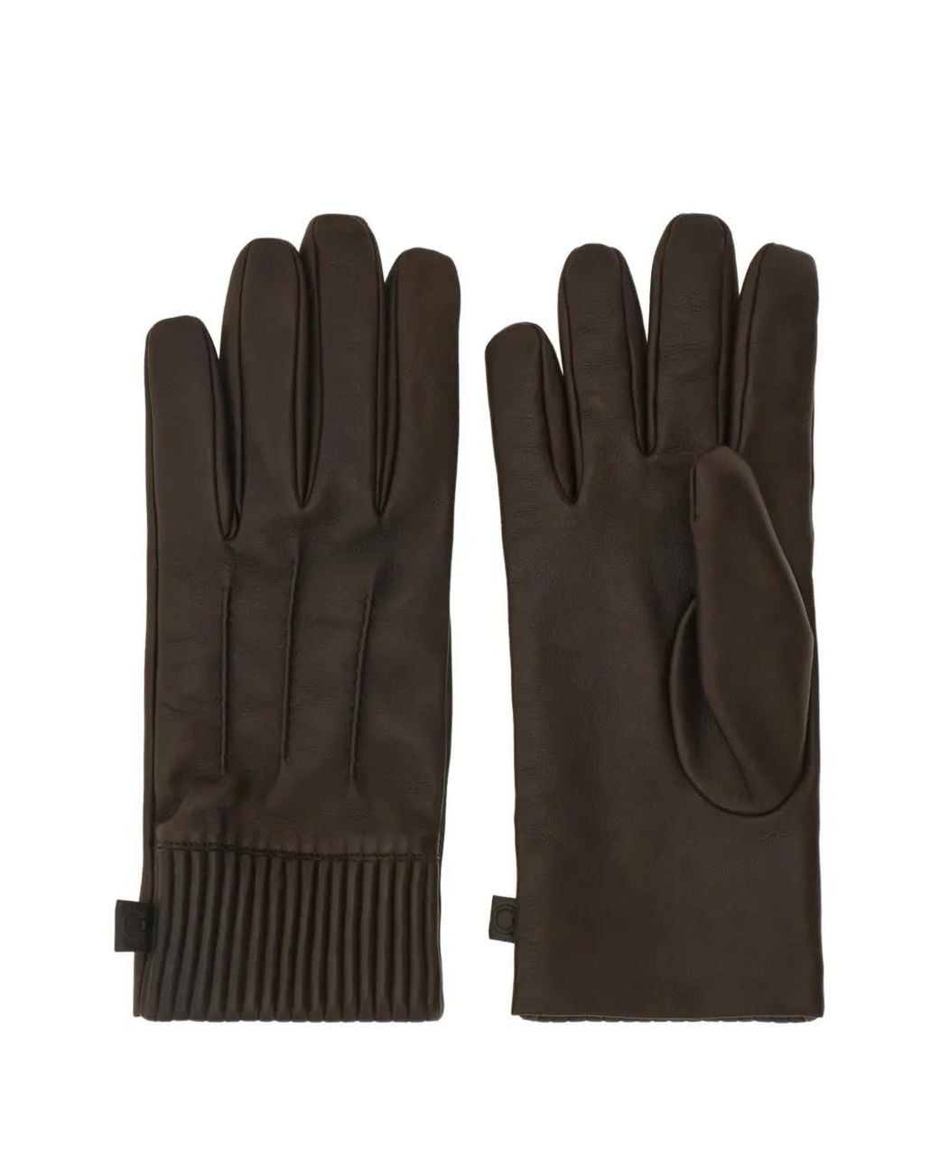 Dark brown leather topstitching gathered elastic seams lined Size: 8.5. Gender: Male. Material:Cashmere/Nappa Leather. Color: black
