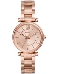 Fossil Women's Metallic Carlie Three-hand Rose Gold-tone Stainless Steel Watch And Bracelet Set