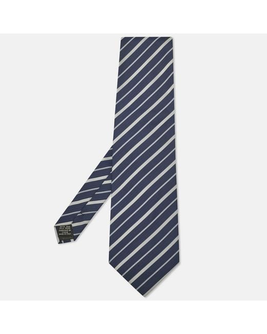 A refined accessory for the modern gentleman this Gianfranco Ferré tie is crafted from luxurious silk in a rich navy blue hue. The classic diagonal stripe pattern adds a touch of timeless elegance making it a perfect choice for both professional and formal occasions. Color: blue