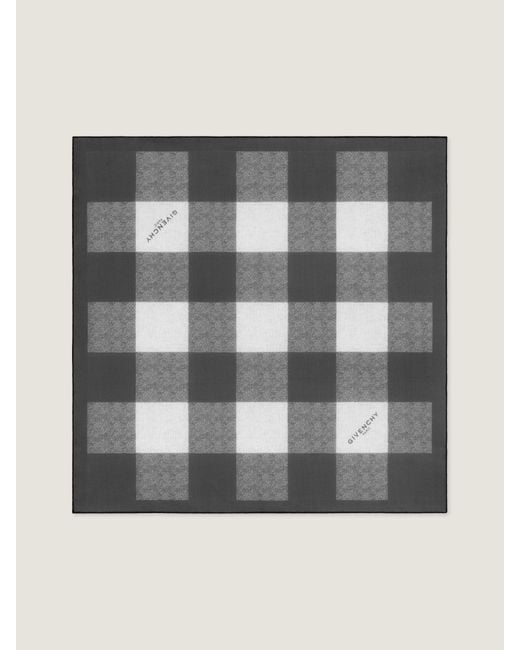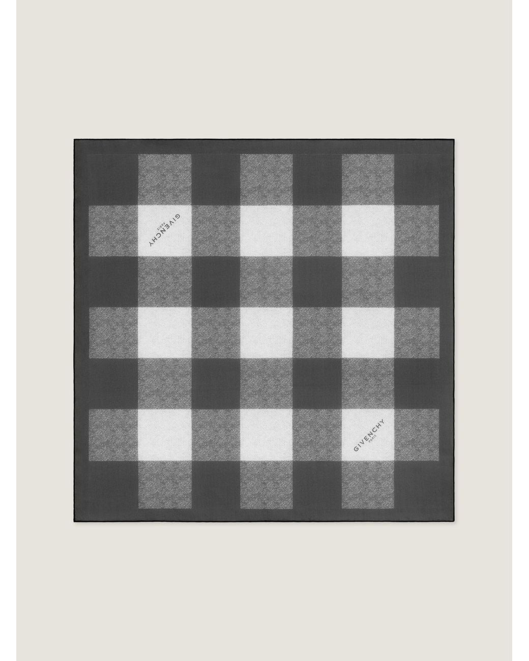 - Checked square in transparent silk georgette. - Diagonal GIVENCHY Paris signature printed on two angles. - Hand-rolled edges. Color: gray