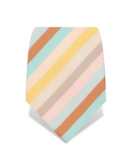 A simple yet vibrant Gresham Blake Tie with diagonal candy stripes. Tie has an embroidered Gresham Blake logo and black lining which features the Grehsam Blake emblem. Ideal for adding a splash of color to any outfit. 100% silk. Hand Made. 150cm X 8cm. Dry clean only. undefined 100% Color: orange