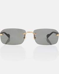 Go to SSENSERectangular rimless metal-frame sunglasses in pale gold tone. · Gray lenses · 100% UVA/UVB protection, category 2 · Logo etched at lens · Adjustable metal nose pads · Logo hardware at temples ·