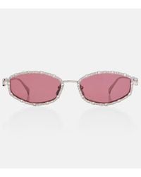 Go to FARFETCHBlack shield frame gray lenses crystal-embellished logo detail These glasses come with a protective case. Size: One Size. Gender: Unisex. Material:Acetate. Color: gray