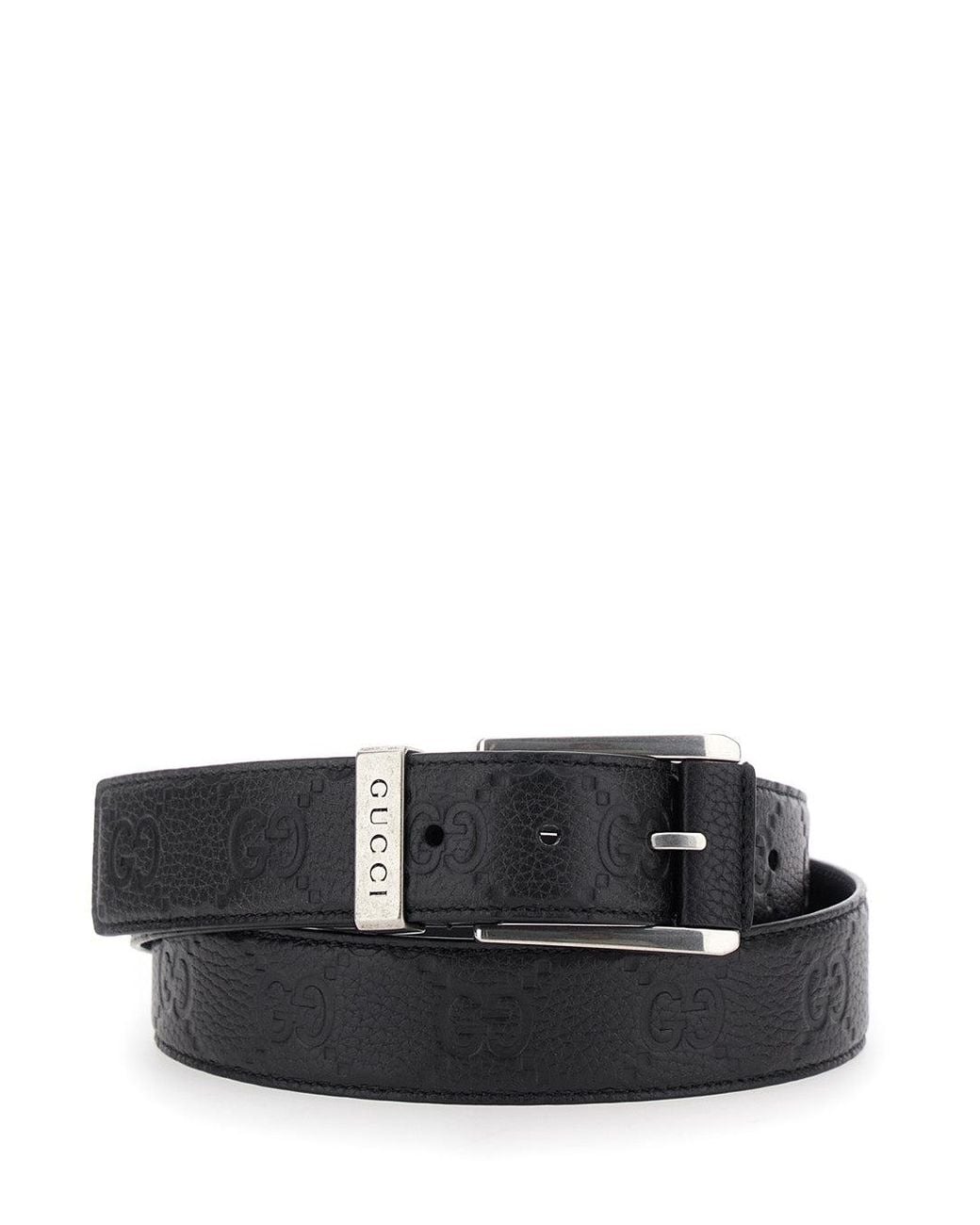 - Belt With Square Buckle And All-Over Embossed Gg Logo