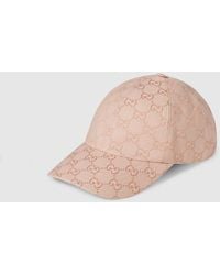 Go to GucciLightweight materials and neutral colors define a selection of accessories, evoking a warm-weather feeling. Bucket hats and wide-brimmed hats in raffia play with various logo animations for the new season. This baseball hat