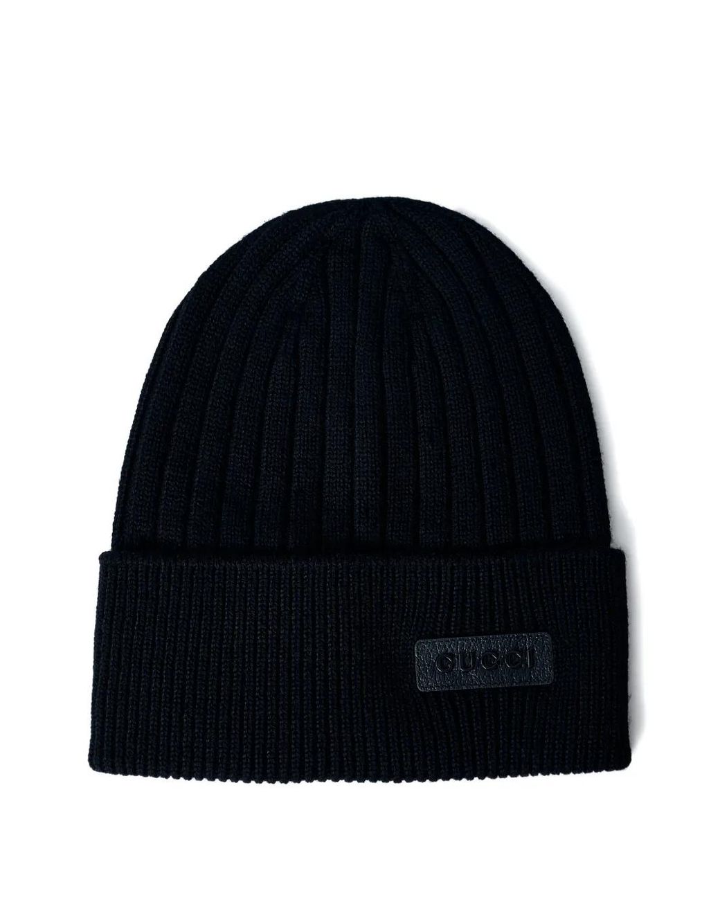 Black wool folded brim logo patch Size: S. Gender: Male. Material:Wool/Calf Leather. Color: black