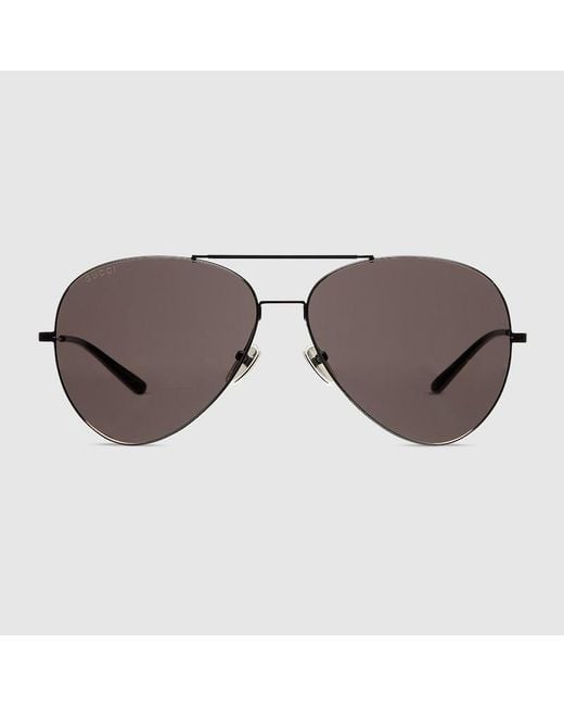 Introducing Spring Summer 2026. Distinctive eyewear shapes are enriched with emblematic signatures that create a fil rouge in the collection. This style is featured in several looks of La Famiglia. Presented with a black metallic frame, it features an Interlocking G detail across the temples and a grey lens. Black metallic frame, Black metallic temples with an Interlocking G detail, Grey lens, 100% UVA/UVB protection, Adjustable nose pads, GG2172S, Temple length: 5.5", Lens height: 2.2", Nose bridge length: 0.6", Frame height: 2.2", Frame width: 5.9", Hinge to hinge: 5.7", Made in Japan, The eyewear case in black is complete with a magnetic closure and GG motif interior.