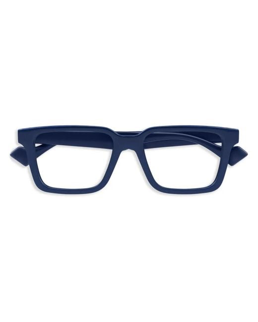 Navy blue acetate rectangle frame clear lenses logo-engraved arm straight arms curved tips All glasses from FARFETCH are sold as non-prescription frames. These glasses come with a protective case. Size: 56. Gender: Male. Material:Acetate. Color: blue