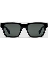 Go to GucciThe Pre-Fall 2025 eyewear collection successfully combines the coveted silhouettes of bygone decades with a contemporary logo feel. Here, this dark brown tortoiseshell acetate frame pairs with an Interlocking G detail and engraved