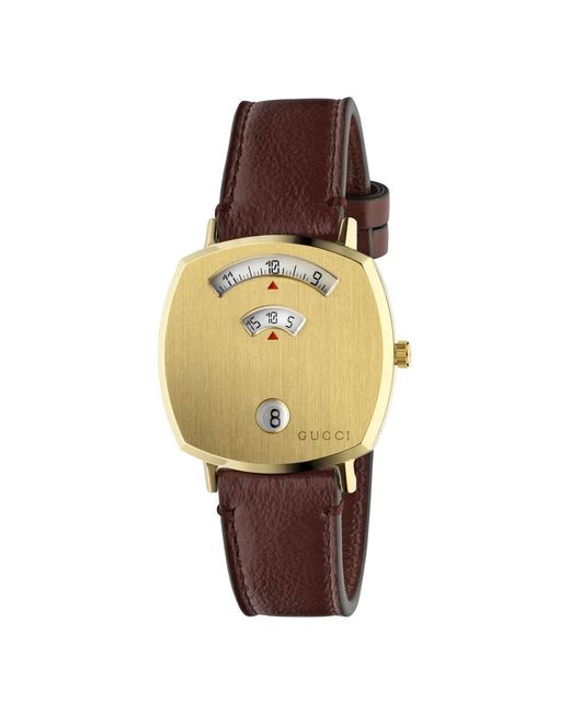 Elevate your style with this Gucci watch for women. Featuring a quartz movement, sapphire crystal, and leather strap, this accessory is both elegant and functional. Water-resistant up to 3 ATM (100 feet/30 meters). Color: metallic