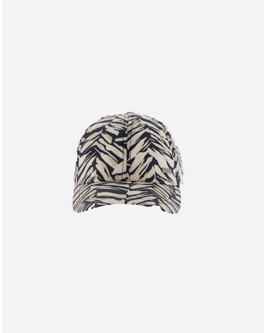 Baseball cap in water-repellent nylon treated to create a wavy, aged-effect look. A sophisticated lifestyle garment revamped with a vibrant graphic print and details made from a fabric whose 30-denier nylon thread wraps around and covers a 20-denier elastane thread, both in the weft and warp. The resulting texture has 4-way stretch. Thanks to its packable design: it's easy to stow away and transforms into a small pouch, making it a convenient option for your suitcase. Ideal for the mid-season and travelling in style. Packable model regular fit all-over print peak lined herno metal logo adjustable strap on the back made in italy performance: herno resort travel pack. 100% pa - main fabric: 100% polyamide / nylon. Secondary fabric: external layer: 86% polyamide / nylon 14% elastane / spandex. Membrane: polyurethane. Trimming: 55% cotton 45% polyester.