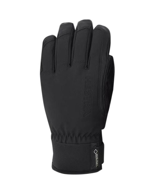 Ready for adventures in the mountains, the Hestra Alpine GORE-TEX Short Mitten is one of our favorite gloves for mild-weather snow adventures. The GORE-TEX membrane ensures our hands stay dry and moisture-free while still being able to breathe, and the goat leather palm gives us a durable and supple palm grip for dexterity. The back of the hand fabric is made of FLEXTRON 4-way stretch recycled nylon fabric for freedom of movement and weather protection, and the glove is packed with Fiberfill synthetic insulation to keep our hands from freezing. Lastly, a brushed fleece interior adds extra comfort, and the neoprene cuff and hook-and-loop closure work together to keep out the snow. Color: black