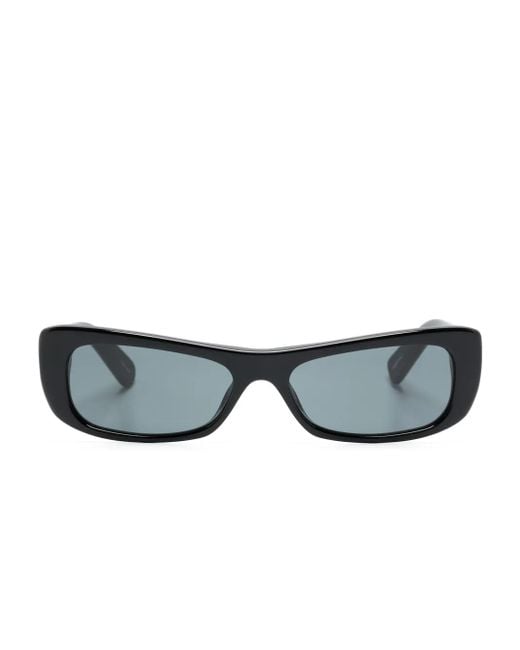 Black acetate glossy finish rectangle shape grey tinted lenses logo print at the arm straight arms curved tips These glasses come with a protective case. Size: One Size. Gender: Unisex. Material:Acetate.