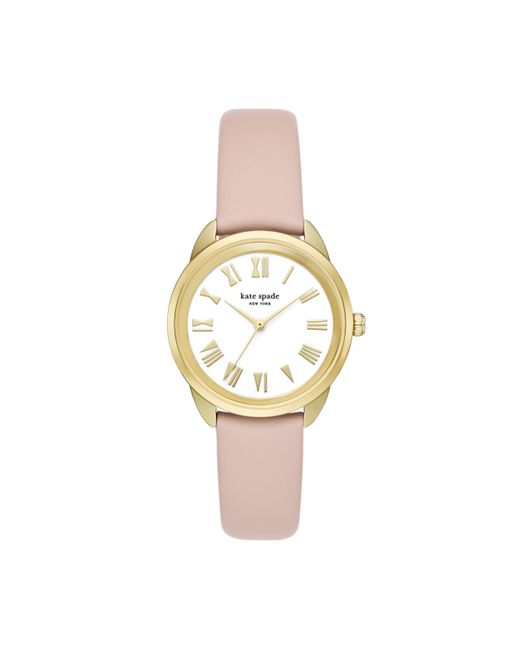 Classic and versatile, our new crosstown watch is just what you need to elevate your look. Round alloy case, with a white dial. Pink, leather band. Water resistant up to 30m: will withstand splashes in water. Color: white