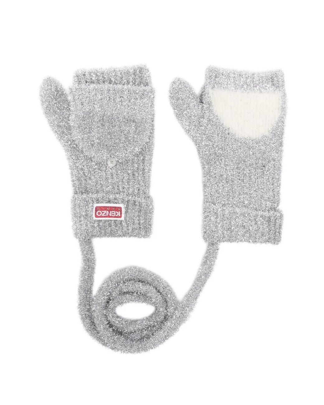 Gray button fastening cord attachment ribbed trim foldover mitt Size: One Size. Gender: Female. Material:Metallized Polyester/Nylon/Wool. Color: white